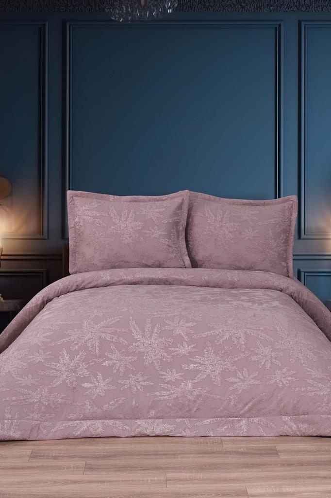 Jasmin Elyaf Dolgulu Çift Kişilik 250x255 Cm Yatak Örtüsü Gül Kurusu