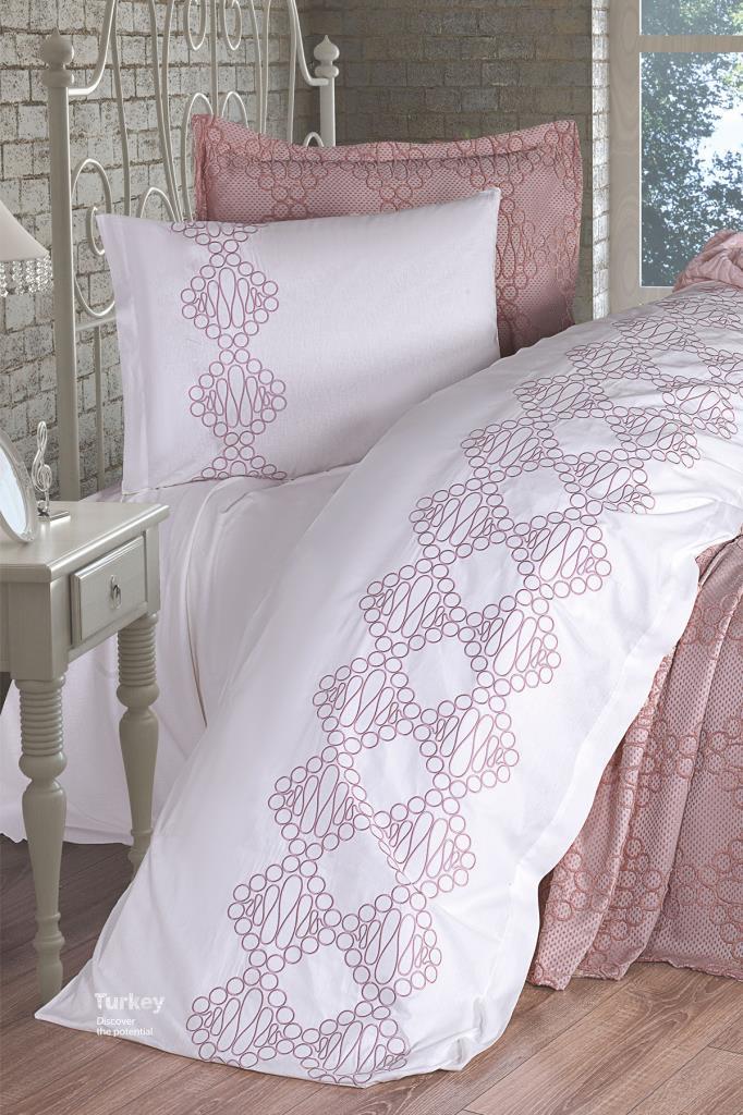 Kristina 4 Parça Nakışlı Pike Takımı 240x260 Pudra