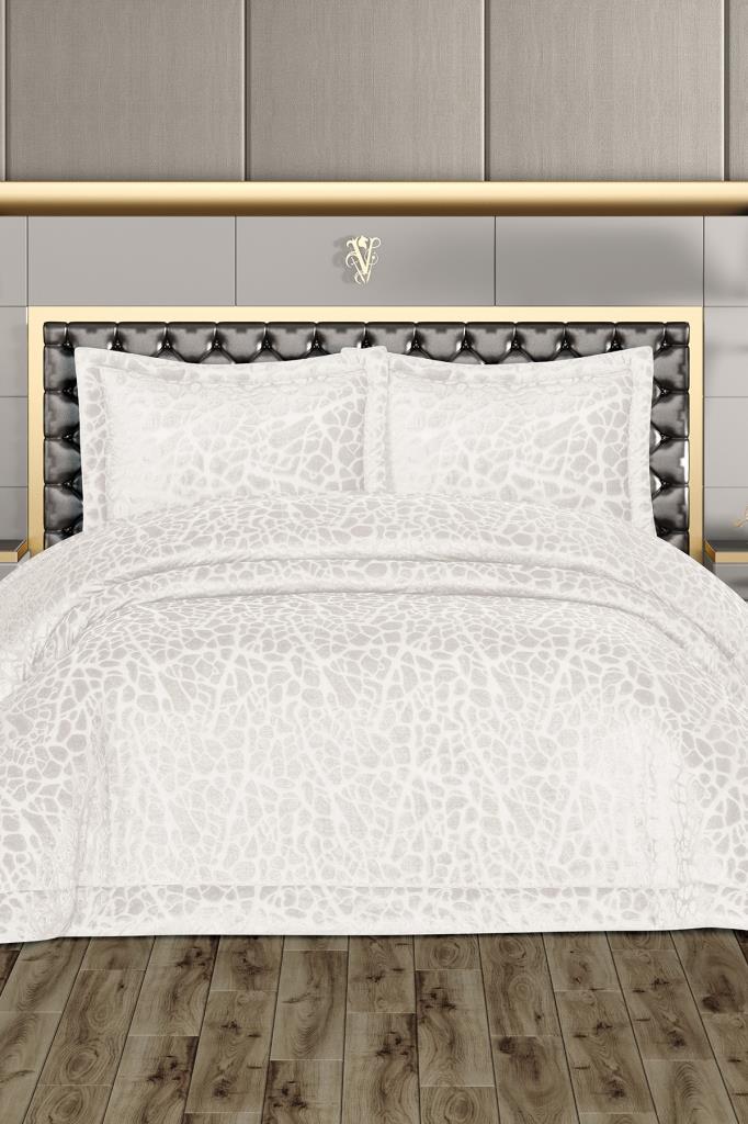 Laçin Dolgulu Kadife Çift Kişilik Yatak Örtüsü Krem