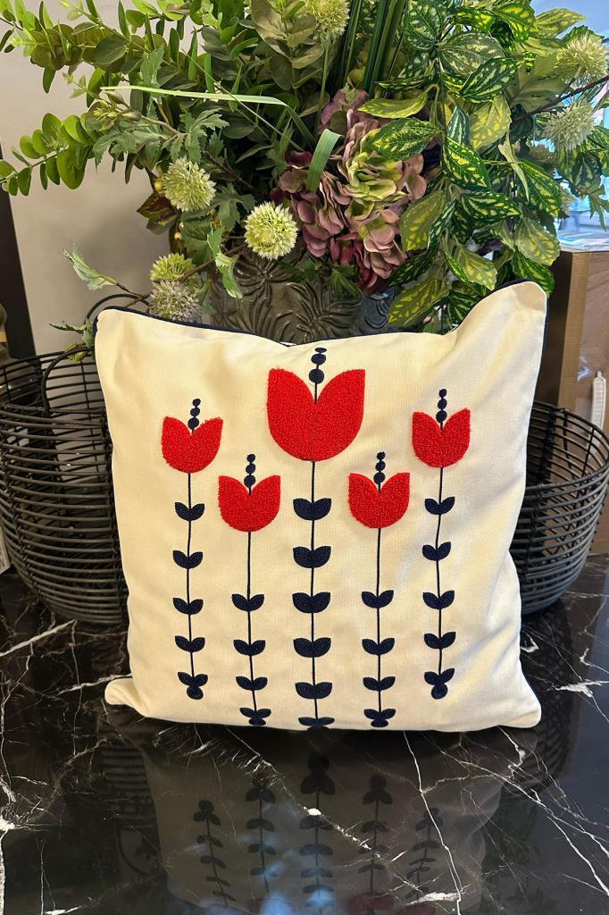 Lale Lüx Nakışlı Keten Kırlent Kılıfı 45x45 cm