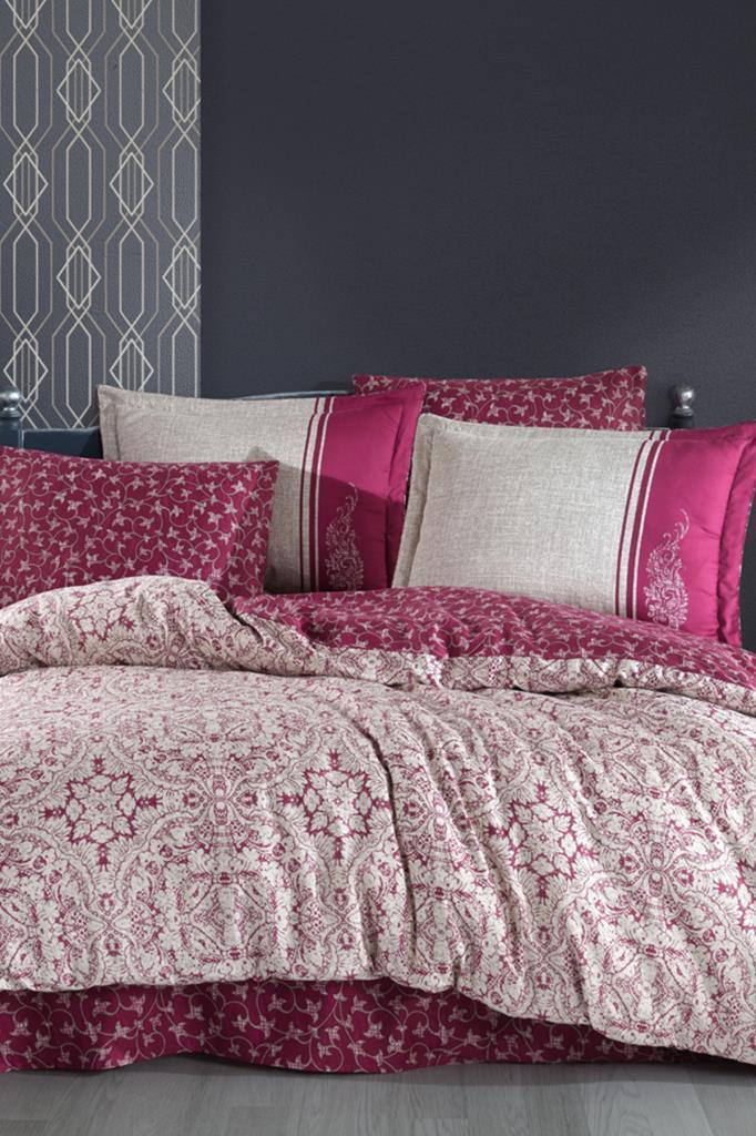 Leona Pamuk Saten Çift Kişilik Nevresim Takımı Bordo
