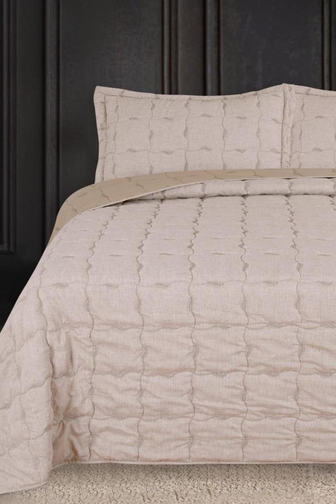 Lesya Nakışlı Elyaf Dolgulu Çift Kişilik 240x260 Cm Yatak Örtüsü Bej