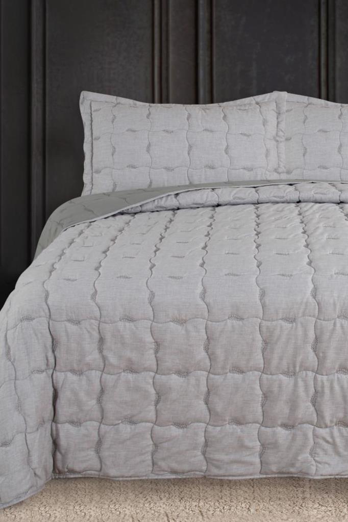 Lesya Nakışlı Elyaf Dolgulu Çift Kişilik 240x260 Cm Yatak Örtüsü Gri