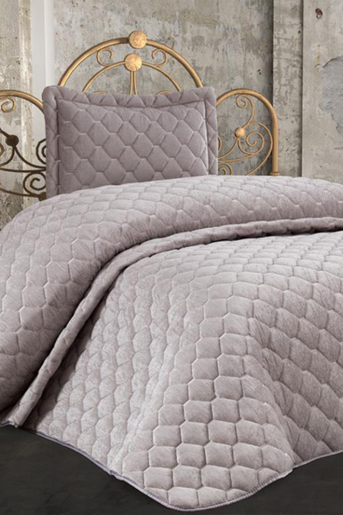 Lima Kadife Dolgulu Tek Kişilik Yatak Örtüsü Gri