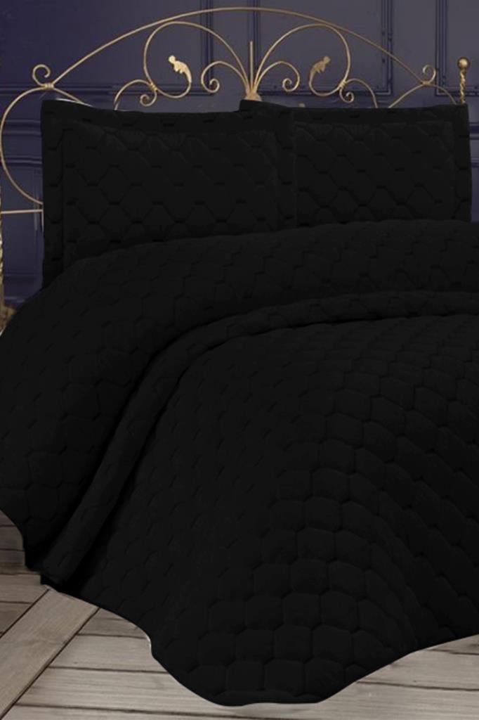 Lima Kadife Dolgulu Tek Kişilik Yatak Örtüsü Siyah