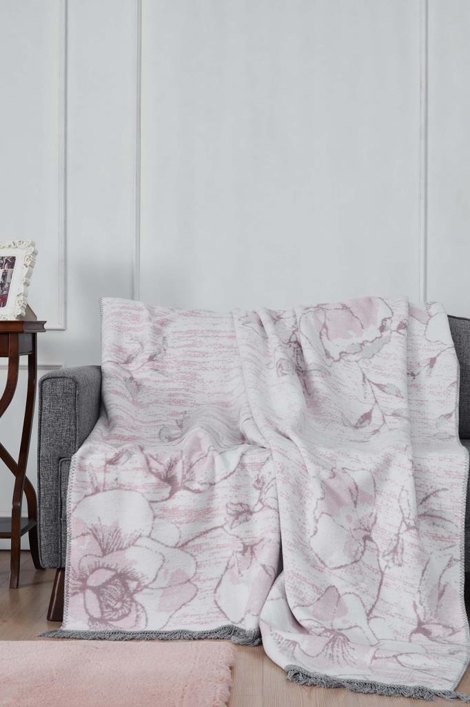 Lissa Çift Kişilik Pamuklu Battaniye Pembe