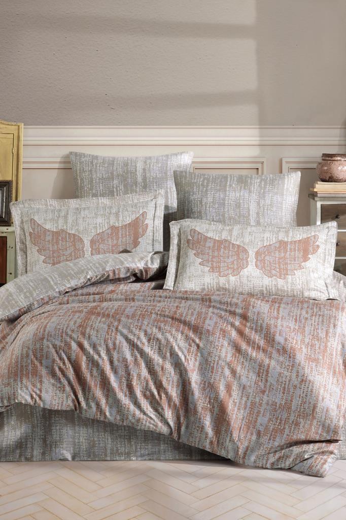 Lydia Pamuk Saten Çift Kişilik Nevresim Takımı Taba