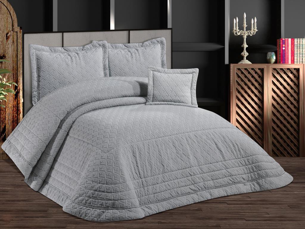 Maraş Çift Kişilik Kadife Yatak Örtüsü Gri