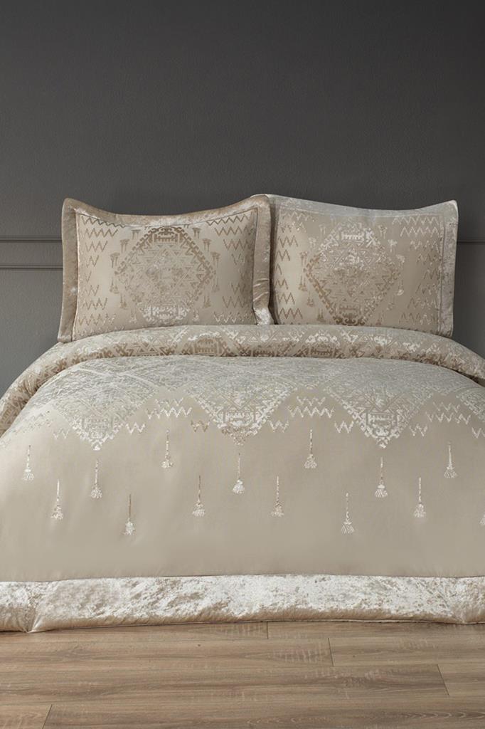 Mercan Elyaf Dolgulu Çift Kişilik 250x255 Cm Yatak Örtüsü Bej