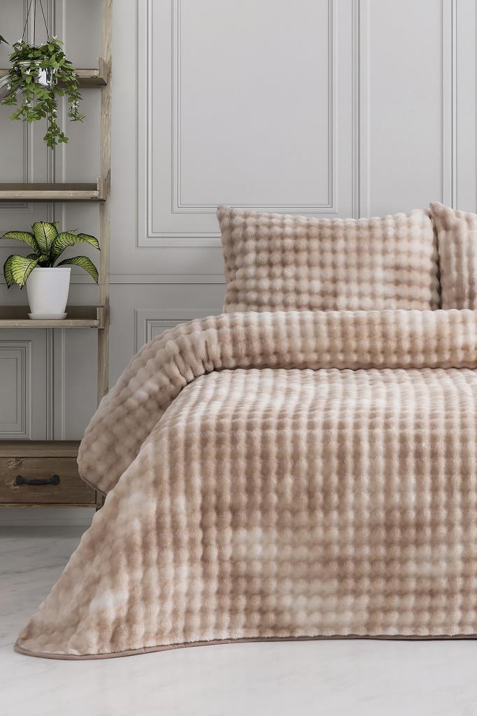 Merinos Reflection Çift Kişilik Battaniye Seti Bej