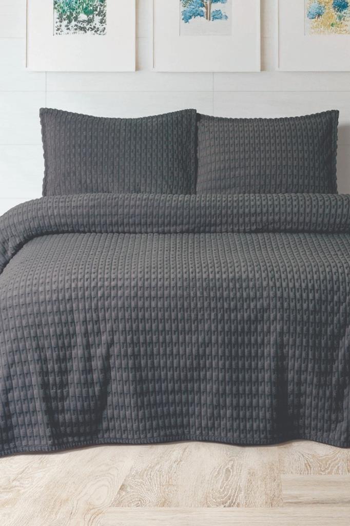 Merinos Twist Çift Kişilik Battaniye Seti Antrasit