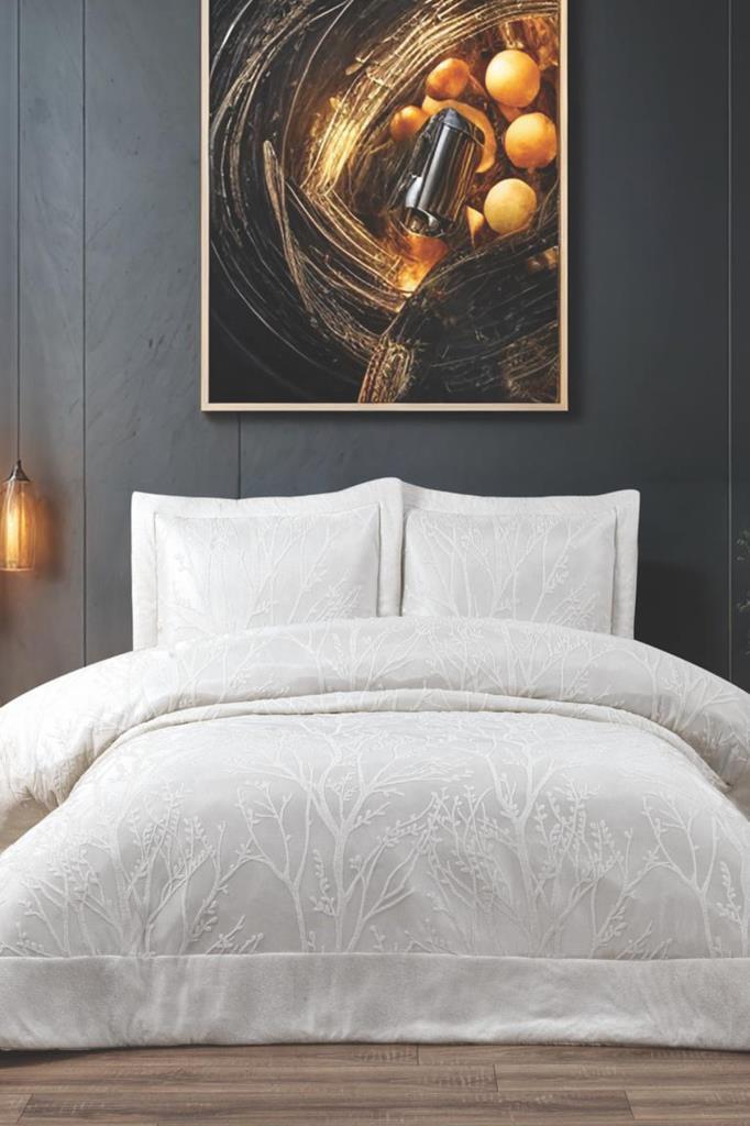 Natural Jakarlı Çift Kişilik Yatak Örtüsü Krem