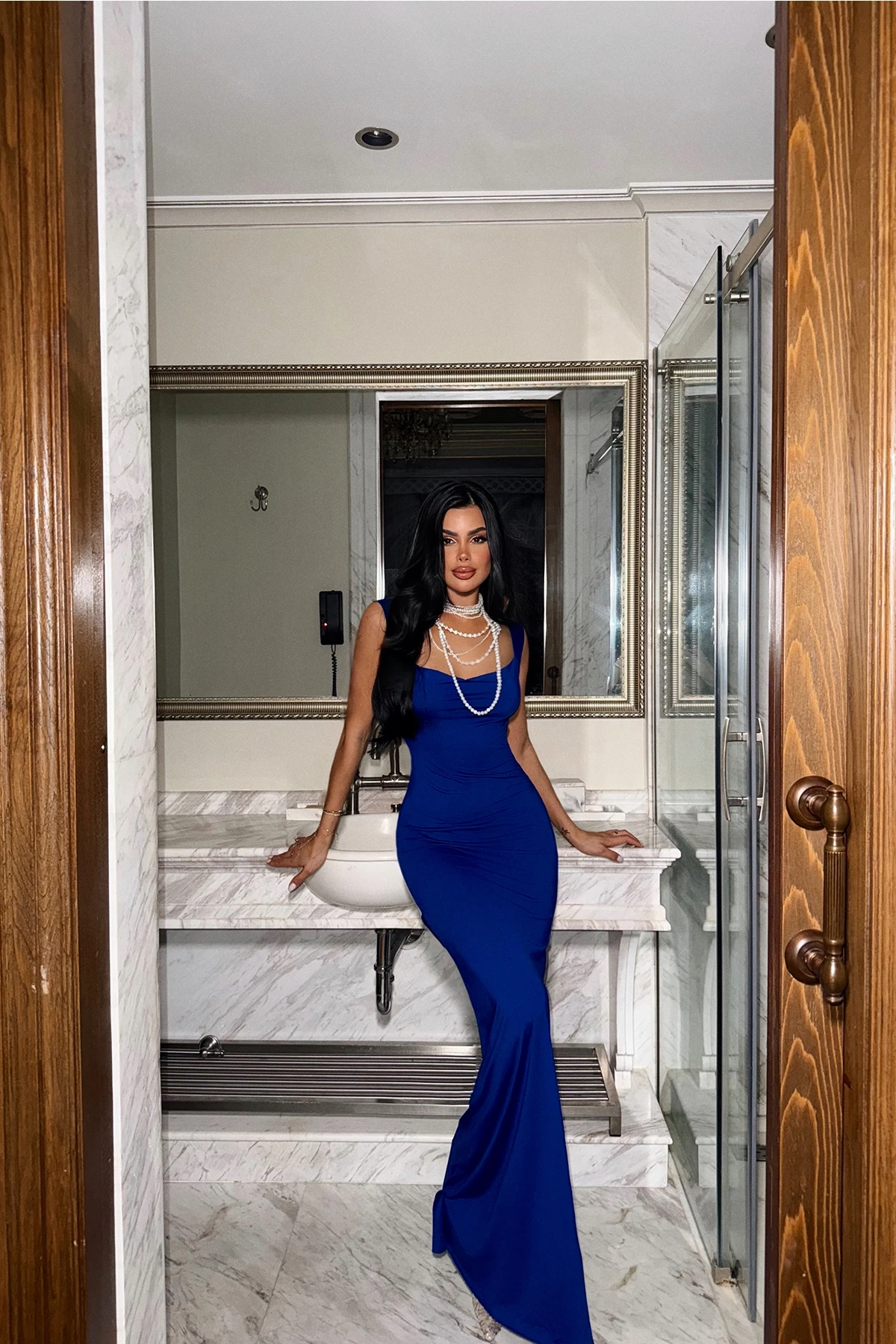 Navy Blue Bow Detail Long Dress