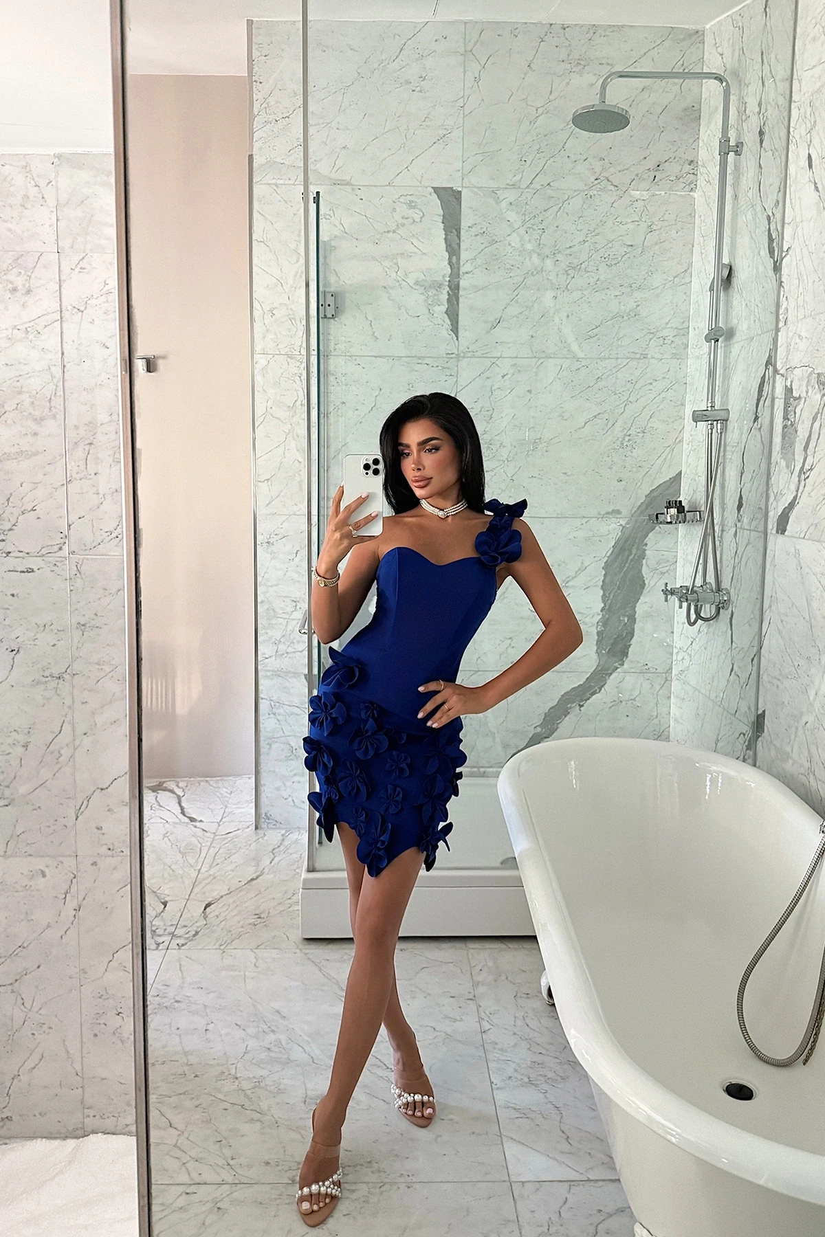 Navy Blue Floral Mini Dress