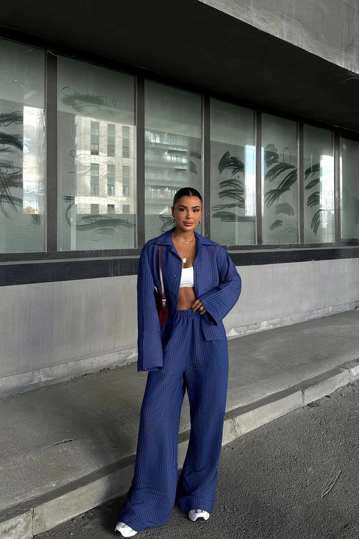 Navy Blue Trousers Suit Size XS is used in the image. Top Length: 62 Cm Bust: 55 Cm Bottom Length: 105 Cm Waist: 38 Cm Model Measurements Height 158 ​​Weight 52 Chest 80 Waist 62 Hip 93