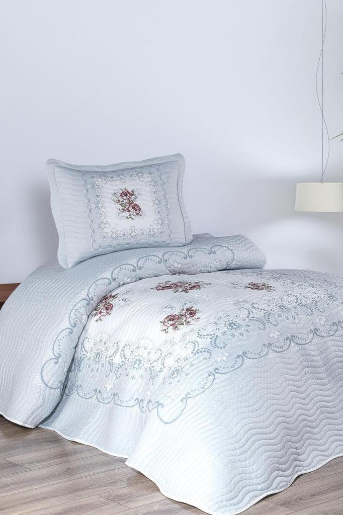 Nerea Baskılı Kapitoneli Tek Kişilik Yatak Örtüsü Mavi