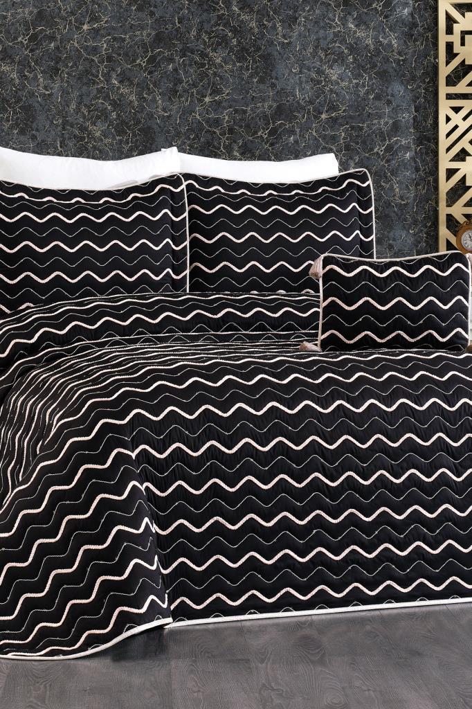 Okyanus Çift Kişilik Yatak Örtüsü 250x260 Siyah Bej