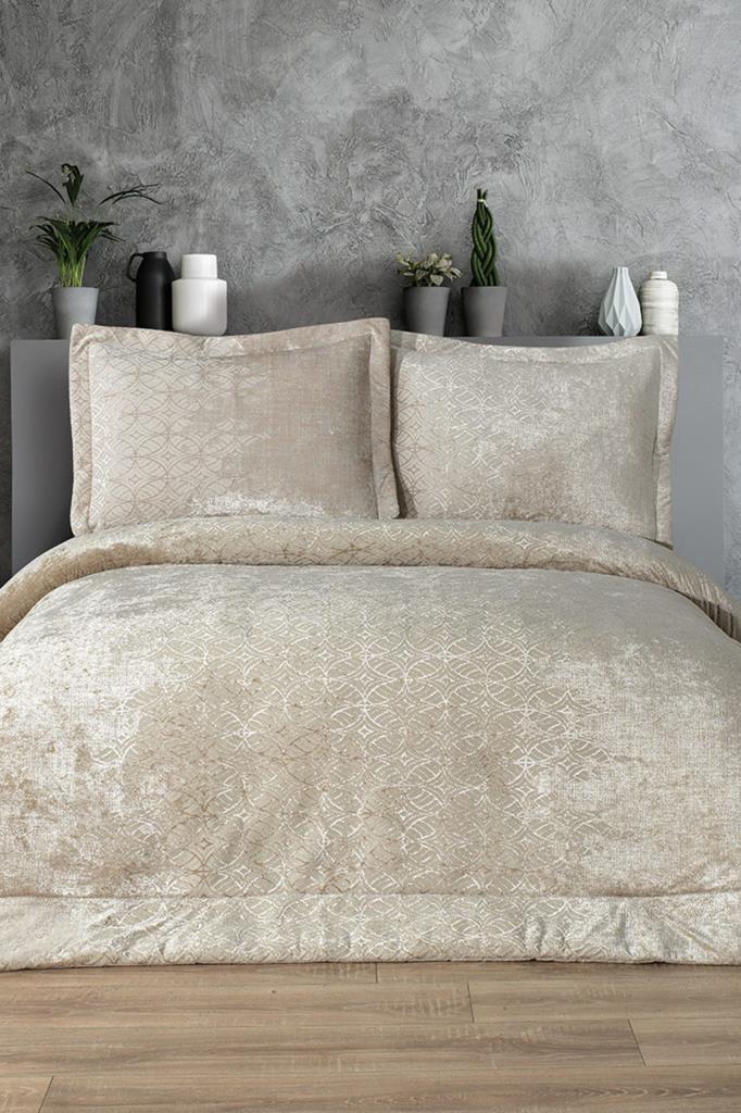 Opal Elyaf Dolgulu Çift Kişilik 250x255 Cm Yatak Örtüsü Bej