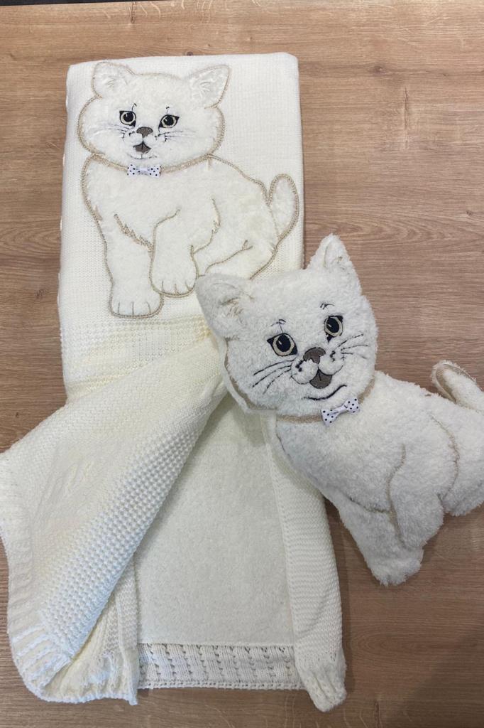 Oyuncak Hediyeli Bebek Triko Battaniye 90x90 Cm Krem