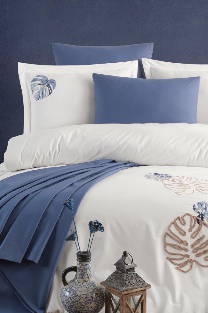 Palmariva Nakışlı %100 Pamuk Çift Kişilik Nevresim Takımı Ekru