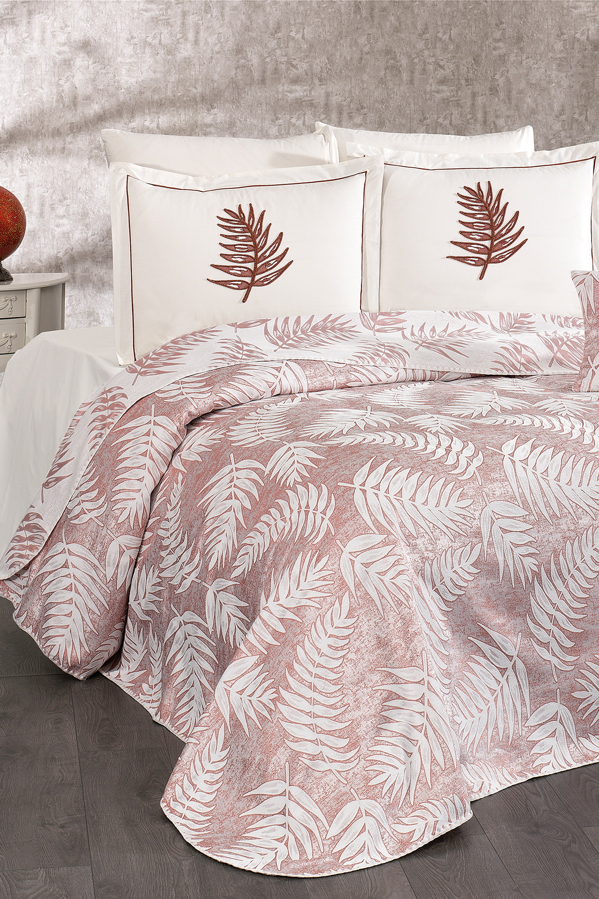 Palmiye 7 Parça Şönil Pike Takımı Krem - Bordo