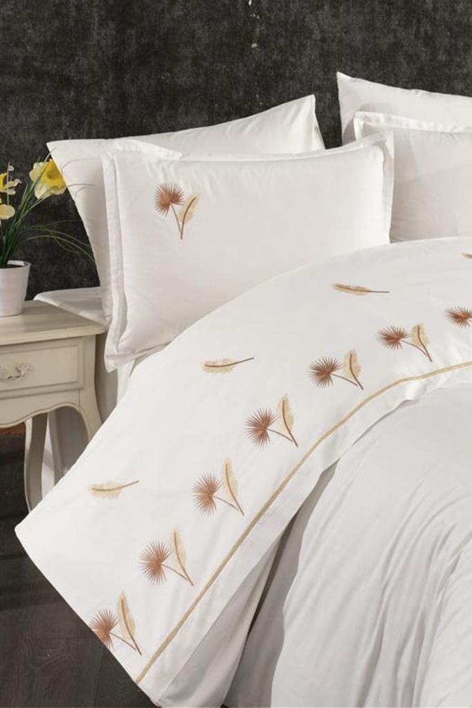 Palmiye Nakışlı %100 Pamuk Çift Kişilik Nevresim Takımı Cappucino