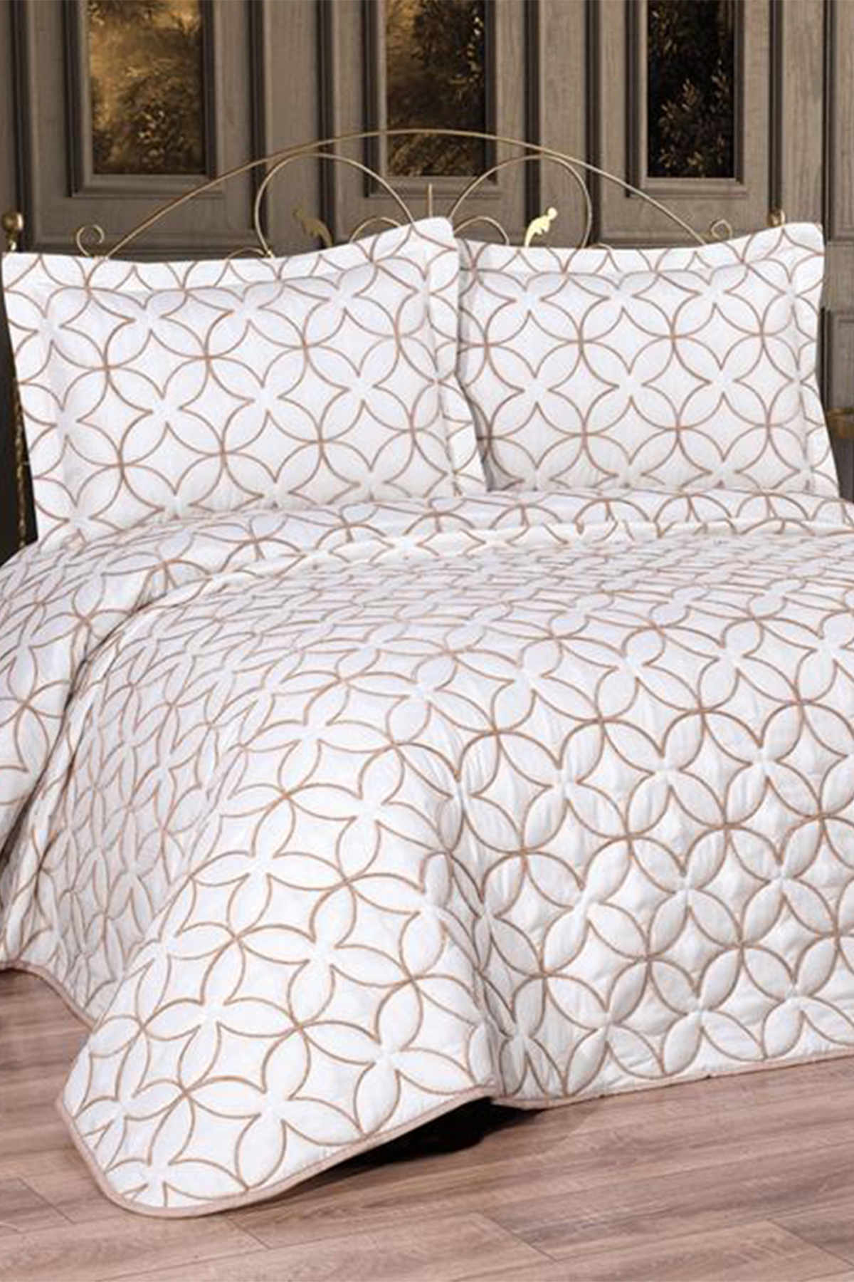 Parolin Çift Kişilik Kapitoneli Yatak Örtüsü Krem Gold