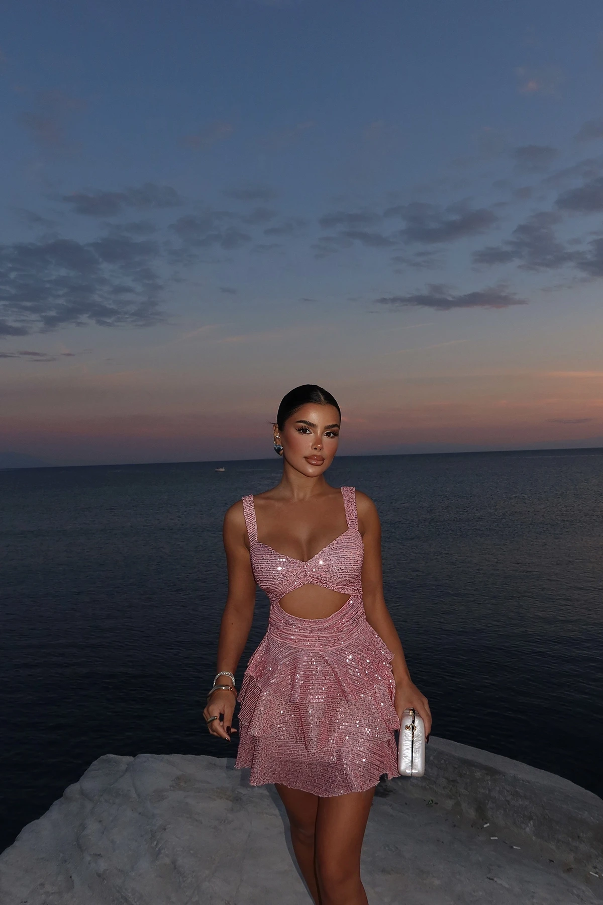 Pink Back Detail Dress Size XS is used in the image. Made from Viscose Fabric. Dress Length: 81 Cm Waist: 24 Cm Bust: 29 Cm Model Measurements Height 158 Weight 52 Chest 80 Waist 62 Hip 93