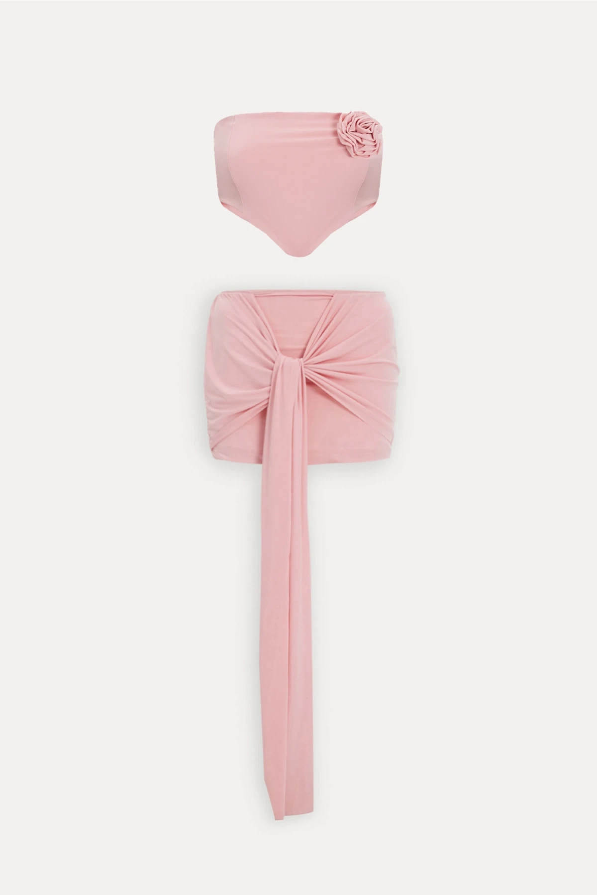 Powder Skirt Suit Size XS is used in the image. Top Length: 27 Cm Bust: 23 Cm Bottom Length: 35 Cm Waist: 37 Cm Made from Sandy Fabric. Model Measurements Height 158 ​​Weight 52 Chest 80 Waist 62 Hip 93