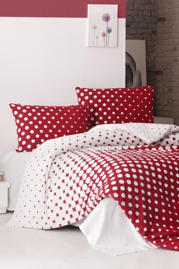 Puantiye %100 Pamuk Çift Kişilik Nevresim Takımı Kırmızı