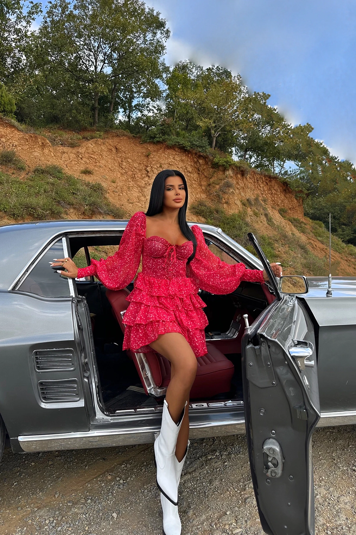 Red front -binding mini dress