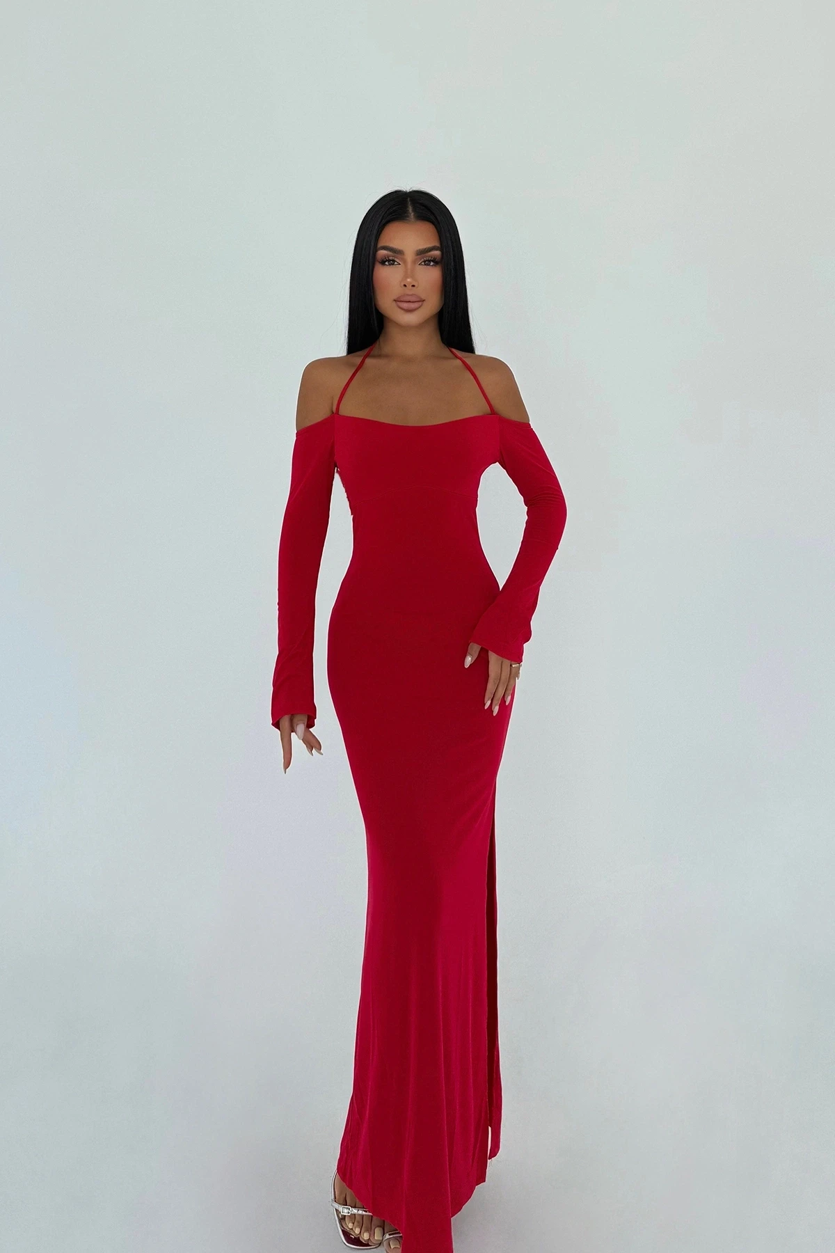 Red Long Sleeve Tied Dress Size S is used in the image. Made from flexible Fabric Dress Length: 126 Cm Bust: 31 Cm Hips: 36 Cm Model Measurements: Height: 160 Weight: 50 Chest: 80 Waist: 62 Hip: 94