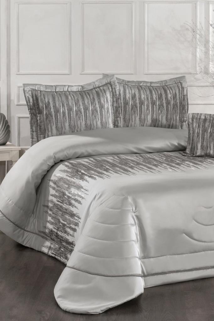 Reyes Elyaf Dolgulu Çift Kişilik 250x255 Cm Yatak Örtüsü Gri