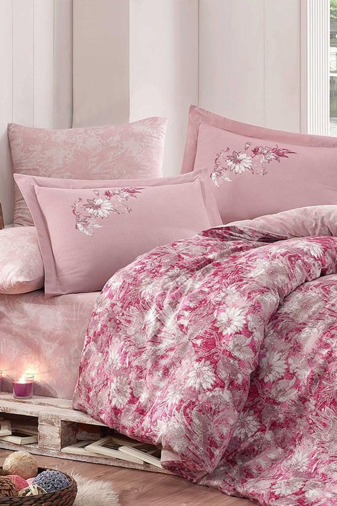 Romina Pamuk Saten Çift Kişilik Nevresim Takımı Pembe