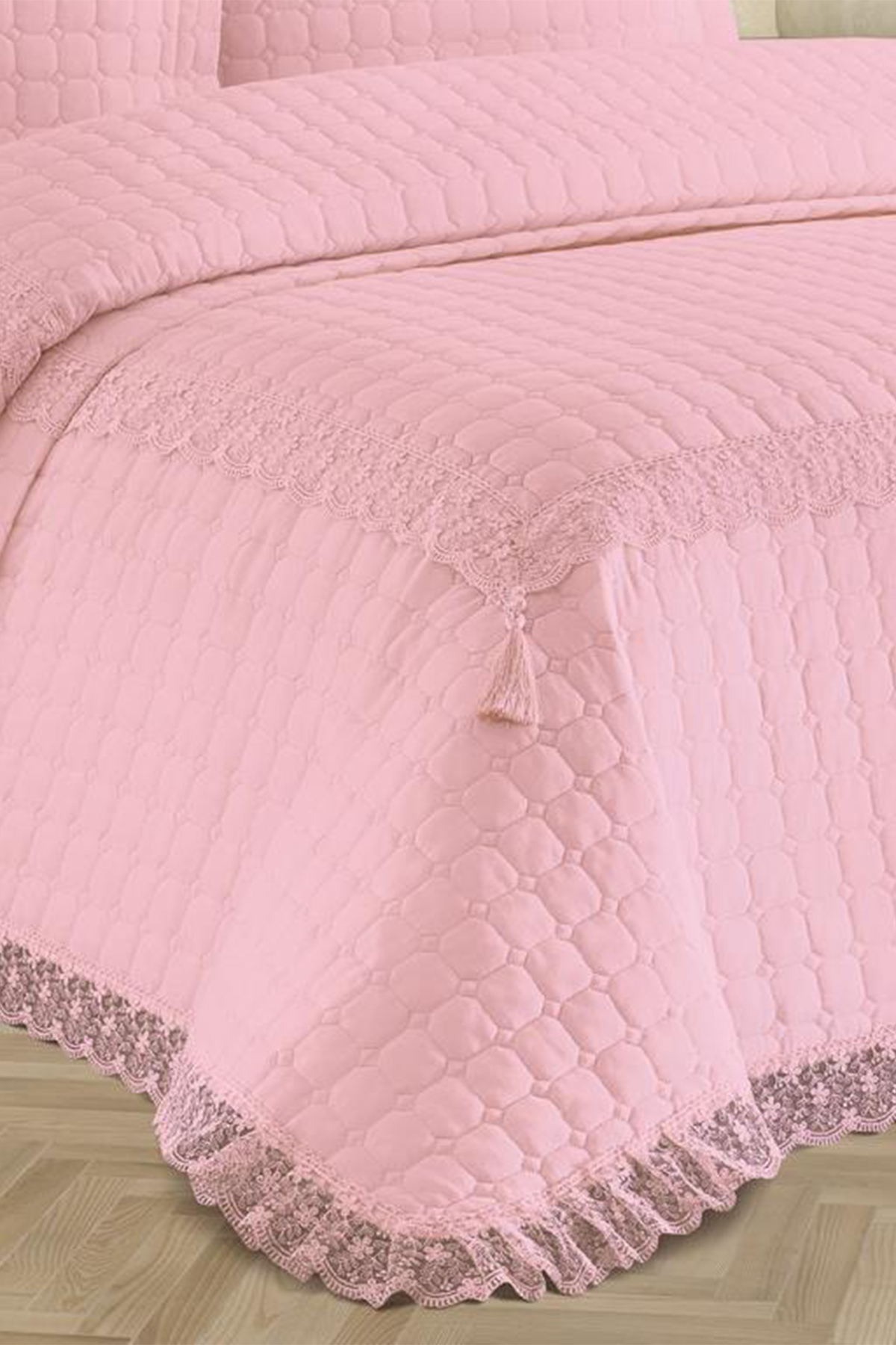 Roza Çift Kişilik Kapitoneli Yatak Örtüsü Pudra