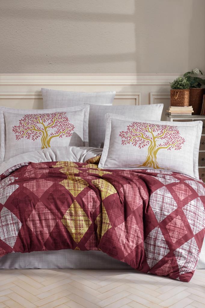 Ruth Pamuk Saten Çift Kişilik Nevresim Takımı Bordo