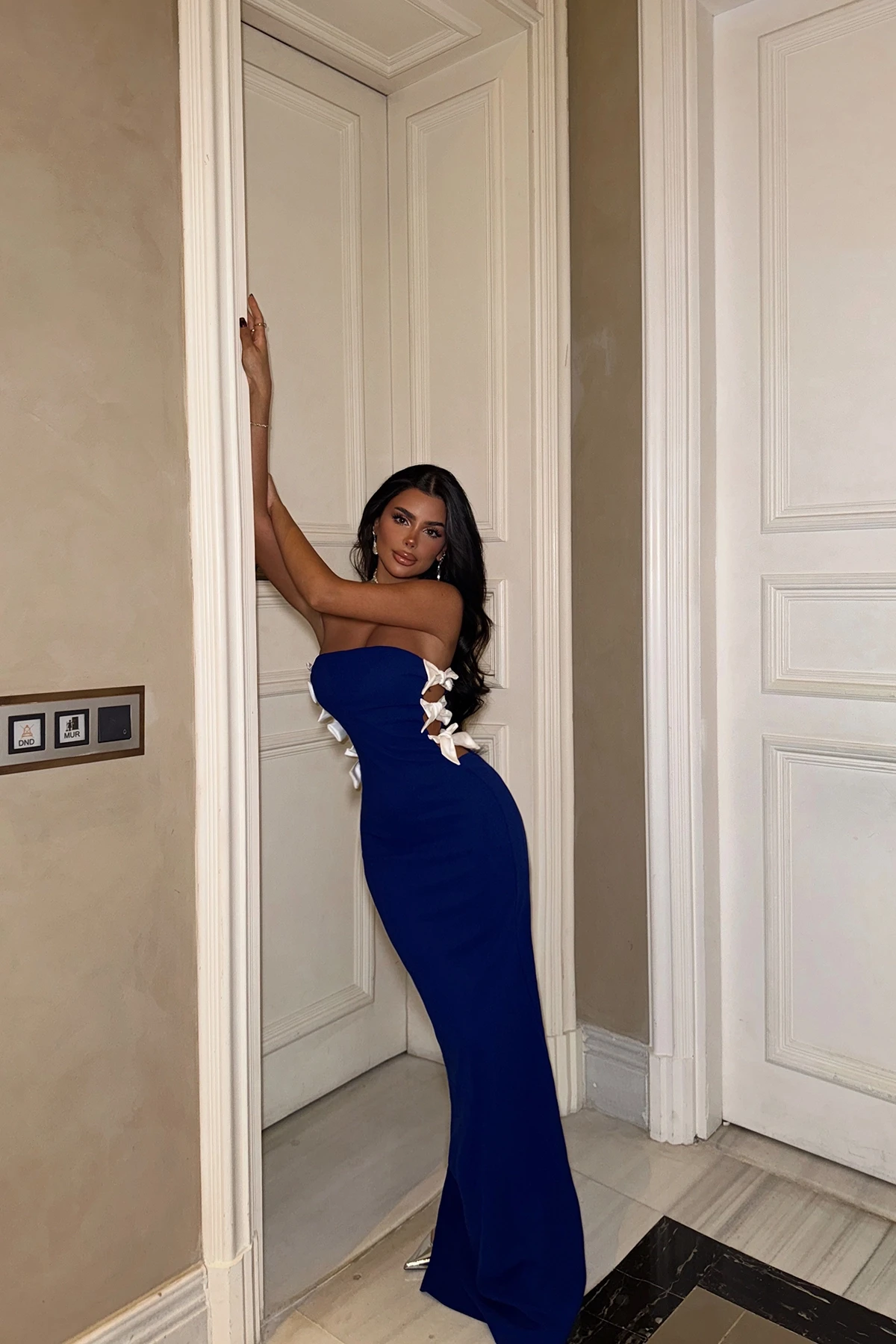 Saks Ribbon Detail Strapless Dress Size XS is used in the image. Made from Atlas fabric Dress Length: 135 cm Bust: 32 cm Waist: 35 Model Measurements Height 158 Weight 52 Chest 80 Waist 62 Hip 93