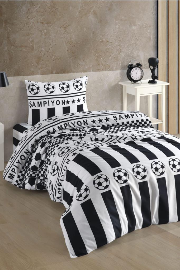Siyah Beyaz Taraftar Desenli Çift Kişilik Nevresim Takımı