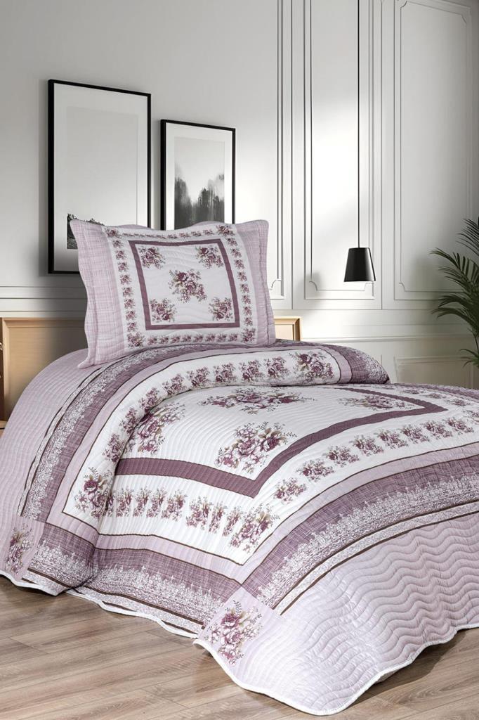 Solindra Baskılı Kapitoneli Tek Kişilik Yatak Örtüsü Gül Kurusu