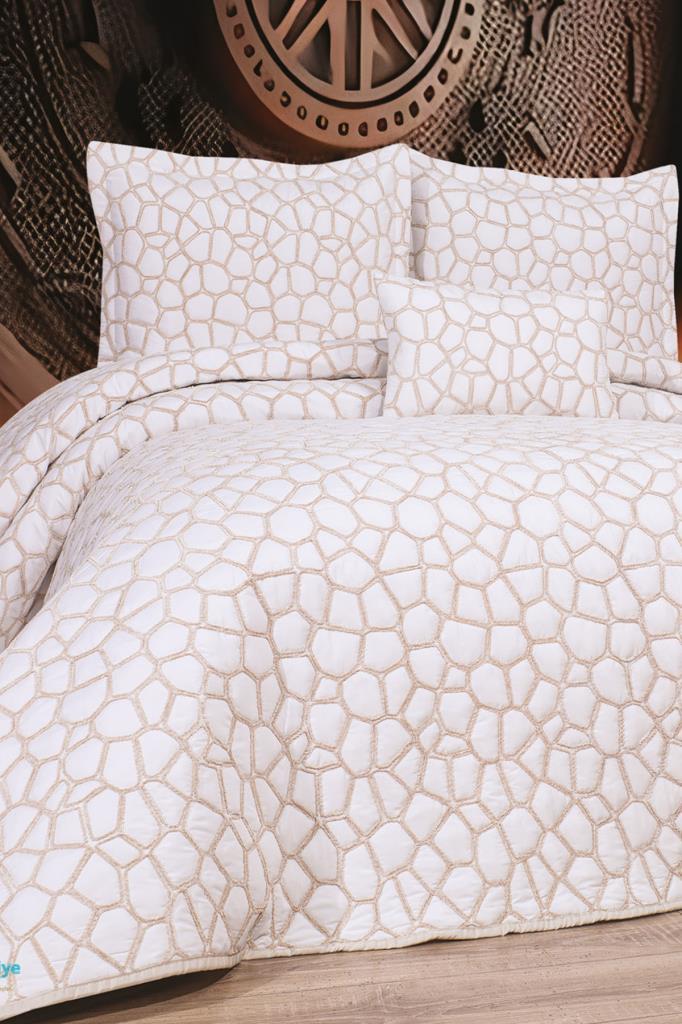 Stone 4 Parça Yatak Örtüsü 240x260 Beyaz Cappucino