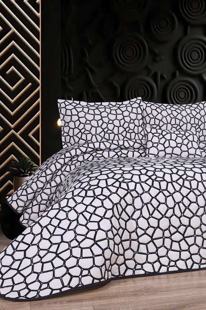 Stone 4 Parça Yatak Örtüsü 240x260 Beyaz Lacivert