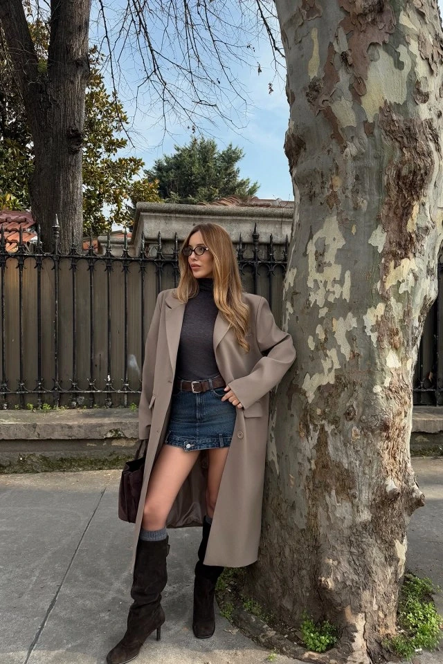 Stone Front Buttoned Pocket Detail Coat Size XS is used in the image. Height:126 cm Bust:56 cm Model Measurements Height 158 Weight 52 Chest 80 Waist 62 Hip 93