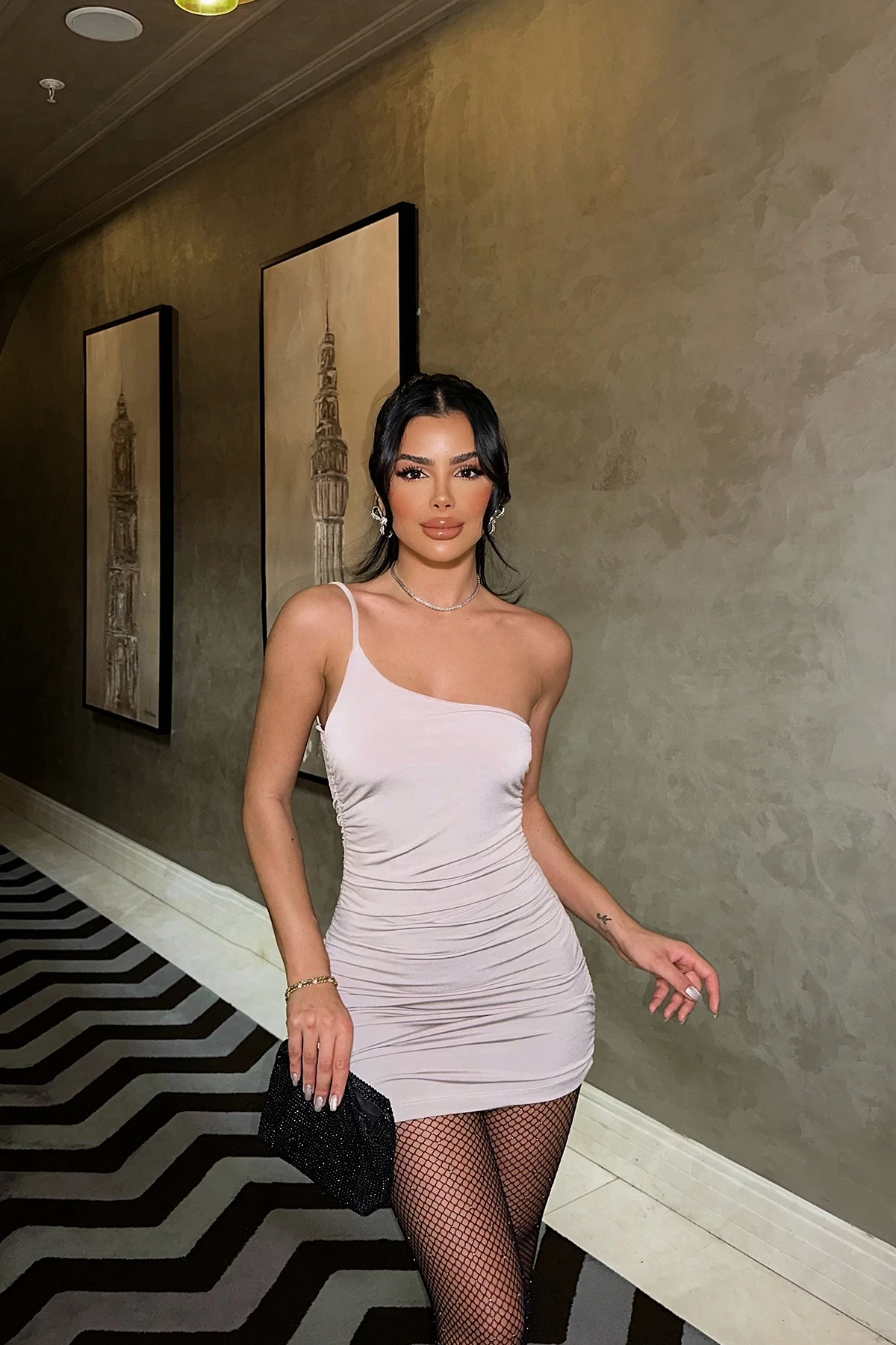 Stone Strap Detail Mini Dress Size S is used in the image Dress Length:62cm Bust:24cm Model Measurements: Height: 171 Weight: 55 Chest: 85 Waist: 65 Hip: 105