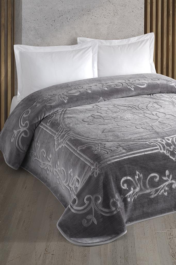 Taç Kristal Emboss Çift Kişilik Battaniye Antrasit