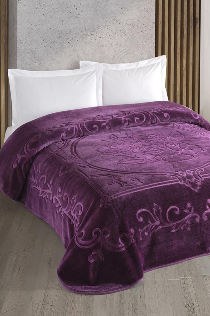 Taç Kristal Emboss Çift Kişilik Battaniye Mürdüm