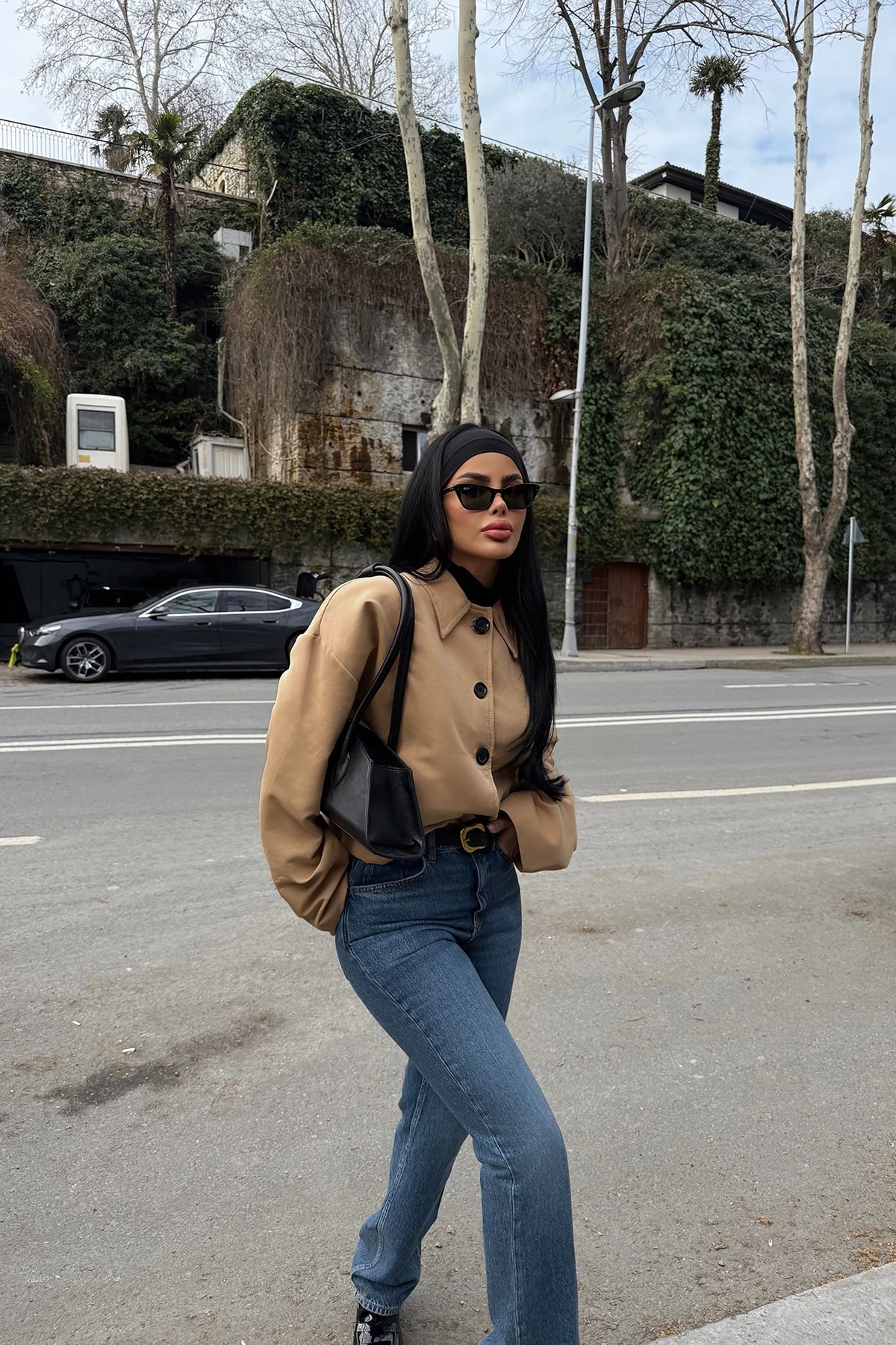 Tan Button Front Jacket The image uses size XS. Height: 58 cm Chest: 61 cm Model Measurements Height 158 Weight 52 Chest 80 Waist 62 Hip 93