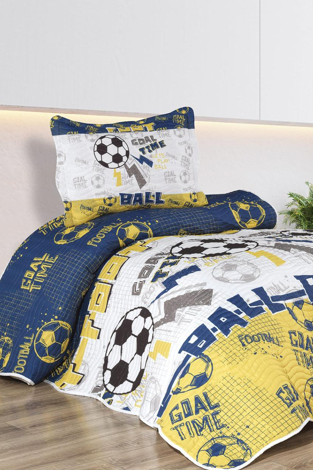 Taraftar Baskılı Tek Kişilik Yatak Örtüsü Sarı Lacivert