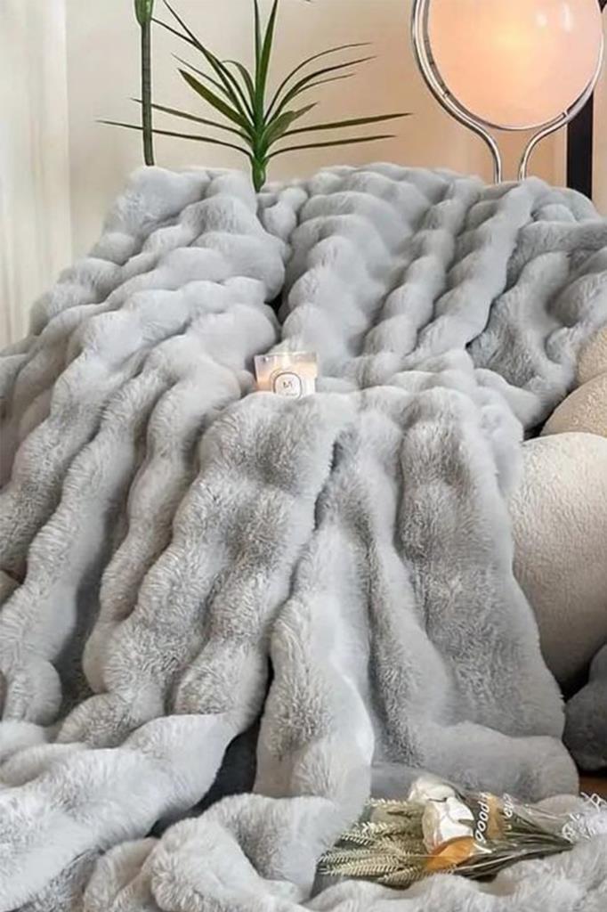 Tomris Tavşan Tüyü Çift Kişilik Yatak Örtüsü 220x240 Cm Gri