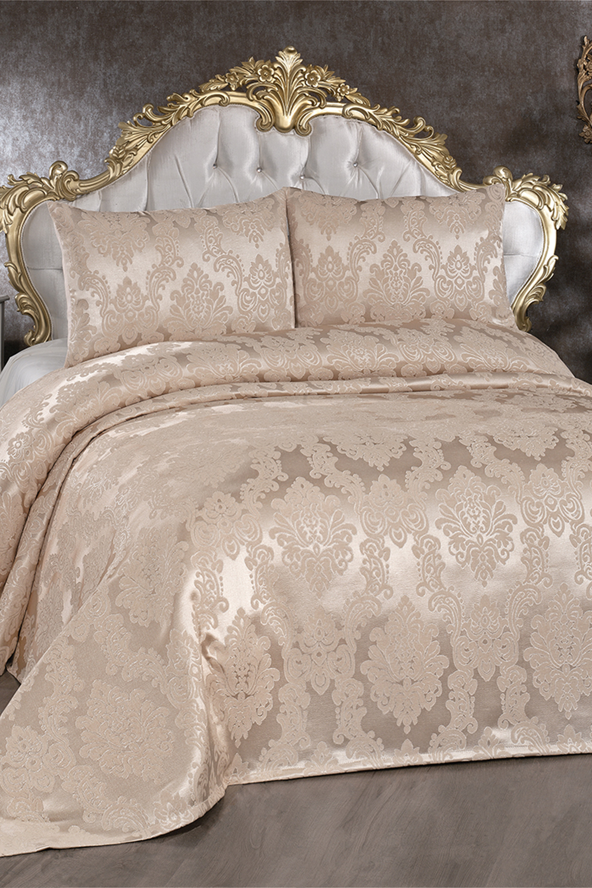 Toprak Jakarlı Şönil Yatak Örtüsü Bej