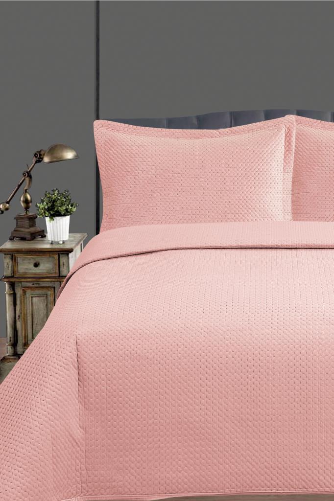 Toskana Çift Kişilik Lüks Kadife Yatak Örtüsü Pudra